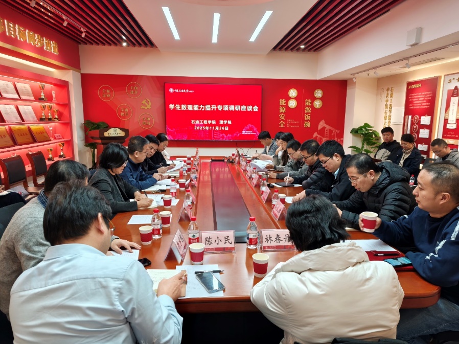 11月26日下午,石油工程学院与理学院在中油大厦A座107会议室联合召开学生数理能力提升专项调研座谈会。会议由石油工程学院院长宋先知主持。理学院领导班子、数学系与物理系负责人及教师代表,石油工程学院领导班子、专业负责人、教学副系主任及相关教师等20余人参加了会议。