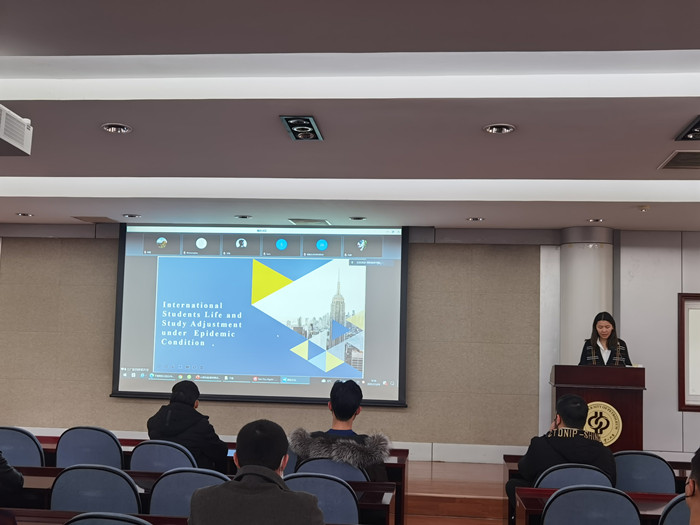 Au cours de la conférence, M. Wang Guangxin a expliqué en détail le statut de vie et d’apprentissage des étudiants internationaux dans la situation épidémique en anglais, a enseigné les connaissances en santé mentale aux étudiants en termes simples, s’est concentré sur l’explication systématique et l’orientation des aspects de la conscience de soi, de la gestion émotionnelle et de la gestion de la pression, et a activement guidé les étudiants à faire face, comprendre et surmonter la pression, maintenir la santé mentale, stabiliser « l’épidémie », guider les étudiants à accepter la réalité et à faire attention à eux-mêmes, et recommander des livres psychologiques professionnels aux étudiants internationaux. À la fin de la conférence, des étudiants internationaux ont interagi avec M. Wang Guangxin en ligne et ont posé des questions. M. Wang Guangxin a patiemment répondu aux questions des étudiants une par une, et l’atmosphère de communication était détendue et agréable.