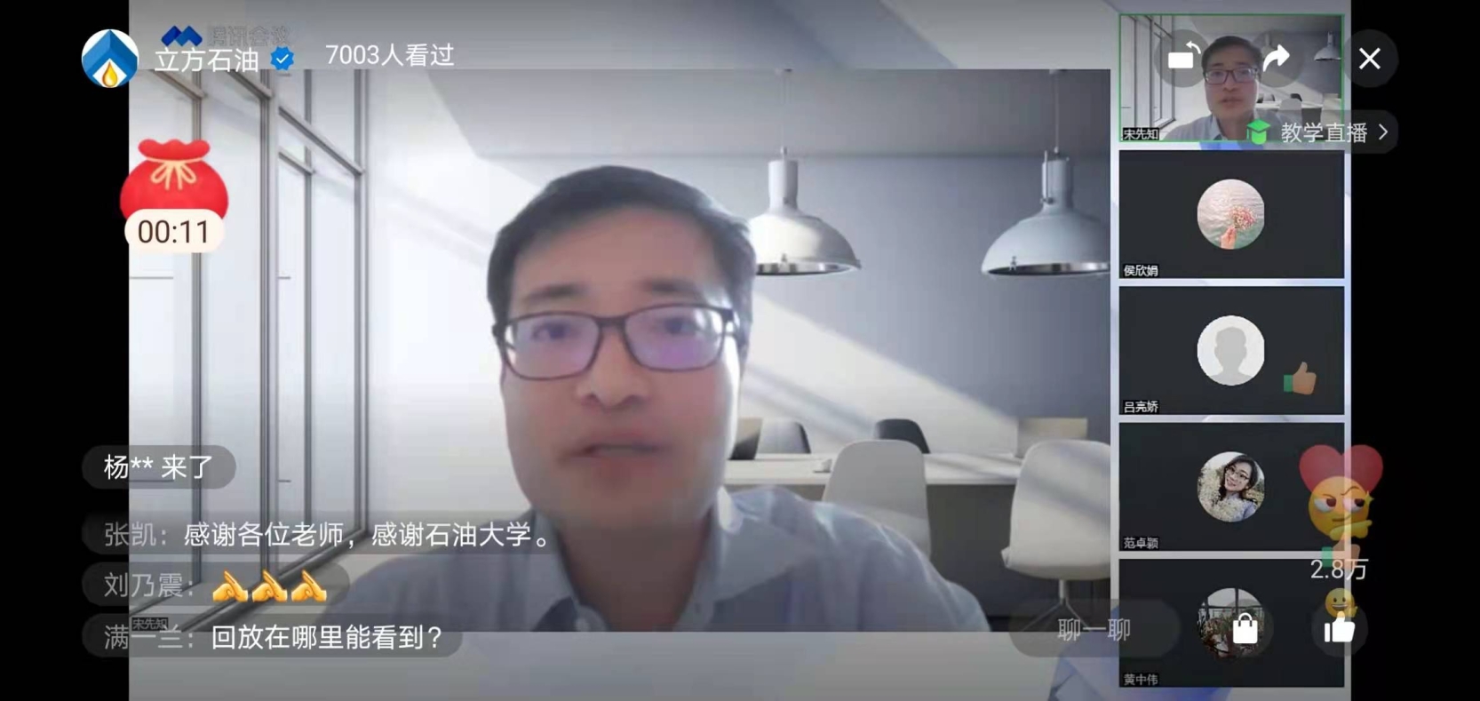 本次活动由实验室常务副主任宋先知教授主持,邀请到曾溅辉、黄中伟、彭勃教授,分别作了题为“石油的来源、发现及其未来”、“国内外地热能开发与利用概况”、“‘刚性’捕集碳排放——CCUS机遇与挑战”等主题云端科普讲座,通过立方石油微信公众号及腾讯会议直播,吸引了包括高校、企业、中小学生、公众等7000余人在线参加。