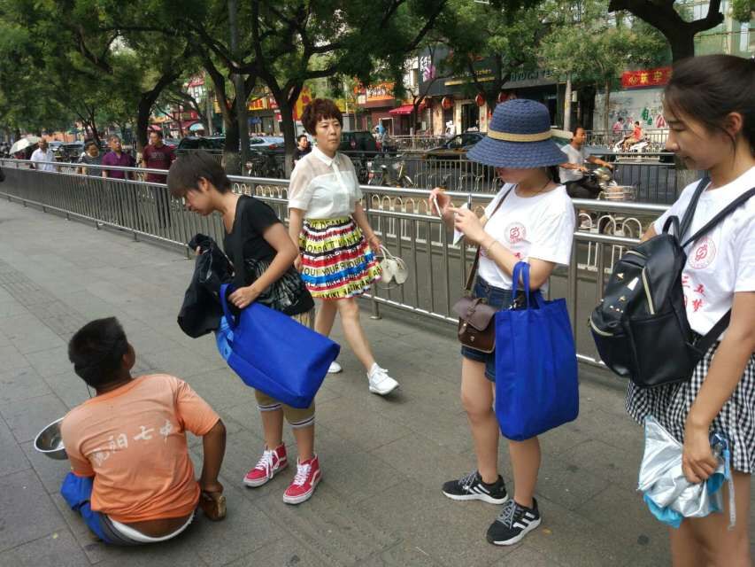 外展小组上午九点半到达七彩昀社工事务所进行专业项目培训工作。主要内容涉及如何分析流浪乞讨人员的心理状况,街头流浪乞讨人员的外展活动如何介入等等,经过培训,志愿者了解流浪乞讨者外出乞讨的原因。随后外展小组分成了两个小分队,在两天时间内对王府井、北京站和中关村的乞讨人员进行救助。在救助的过程中,考虑到流浪人员无规范性、无纪律性的这一特性,我们采取自愿接受救助的态度,开展救助活动。首先,对于可接受救助流浪的人员,进行身份的询问和核对,之后详细询问了他们选择乞讨的原因及他们的需求、未来的打算,并捐出了由事务所提供的衣物和防暑药品。在救助过程结束后,志愿者感触颇深,从另一种视角去看待流浪乞讨人员。