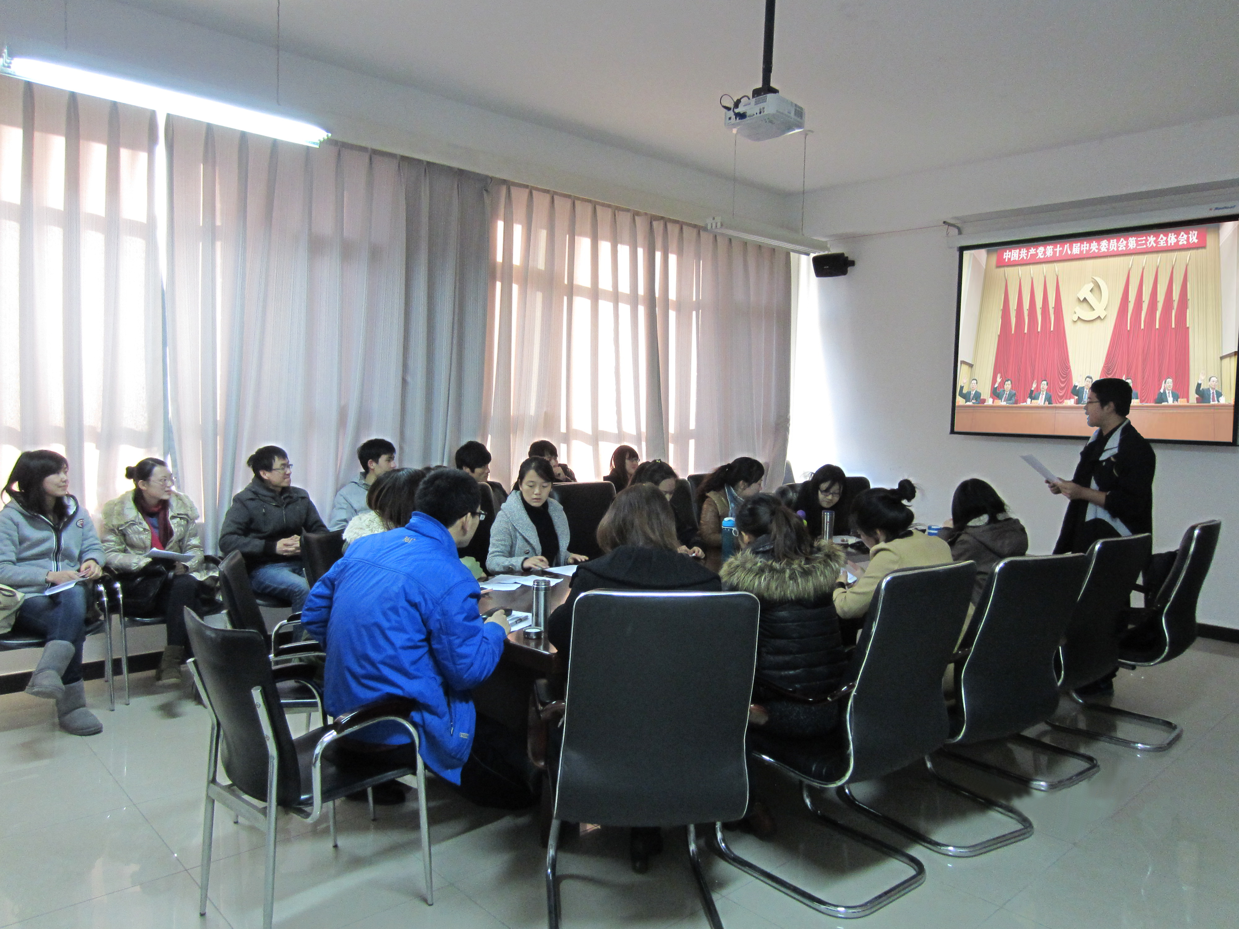 为深入学习党的十八届三中全会精神,人文学院于 11 月 14 日举办“十八届三中全会之我见”大学生讲坛活动。活动中,我院研 12 党支部两位同学发表见解,结合自身专业知识详细阐述了对全会精神的理解。