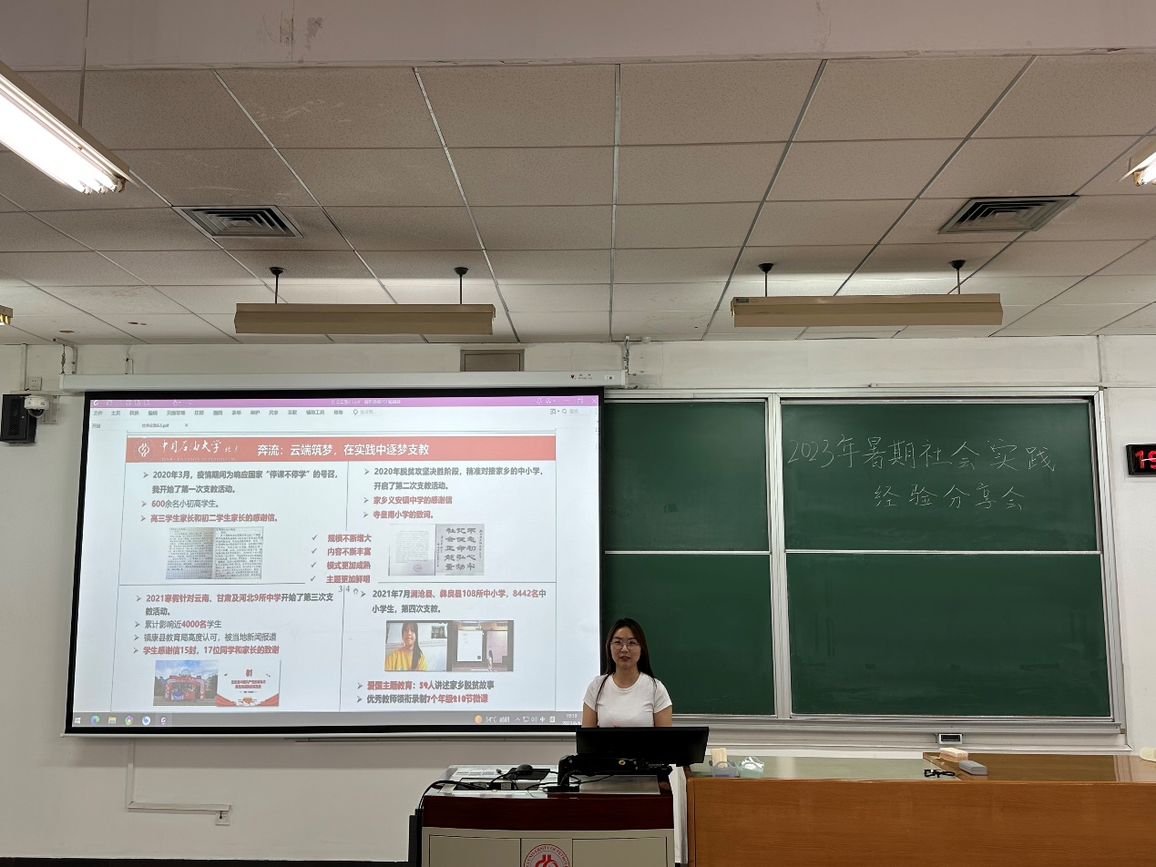 为深入学习宣传贯彻党的二十大精神,引导广大青年学生在实践的课堂中学习、长才干、作贡献,努力成长为堪当民族复兴重任的时代新人,6月6日,安全与海洋工程学院在三教207举办2023年暑期社会实践经验分享会,学院团委书记方百会及学院师生代表参加活动,地球科学学院辅导员朱锐、地球科学学院2019级本科生王冰、马克思主义学院2020级本科生王紫楠作为分享嘉宾主席活动。