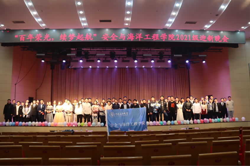 安全学院2021级“百年荣光,续梦起航”迎新晚会于2021年12月5日晚在中油大厦报告厅成功举办! 安全学院党委副书记赵凯、副院长郑文培,安全工程系教师毛东风、叶迎春,海洋油气工程系教师张逸群,学院辅导员老师方百会、付强、林海花、马明雨、于晓鹏、赵思源与2021级新生共同参与了此次迎新晚会。