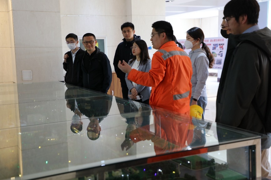 实践团参观了油库沙盘模型,了解了黄岛油库的主要业务、储罐分布、设施功能、日常体量等基本情况。在青岛作业区安全科科长张兴的带领下,实践团登上22米高的储罐顶部进行现场学习,实地了解了储罐密封圈设计与构造、温度传感器和泡沫灭火装置等。在输油泵区以及站控室中,学生深入了解了设备状态智能监控、数据智能采集分析、问题事件及时报警等作业内容。在黄岛油库消防站,实践团参观了消防车辆、灭火救援器材装备等,了解到消防指战员的日常训练、工作职责以及消防战士的英勇事迹。