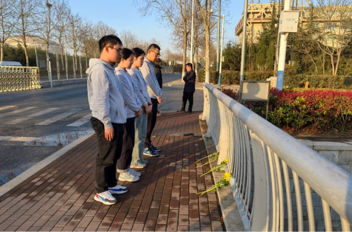 临近清明节,实践团先后前往黄岛油库消防烈士纪念亭、11·22青岛输油管道爆炸事故现场,缅怀英雄先烈,学习前辈事迹。在黄岛油库烈士纪念碑前,安全工程系主任李云涛逐字领读碑文,带领实践团深入学习1989年黄岛油库爆炸事件的过程,并怀着沉痛的心情集体默哀、敬献鲜花、寄托哀思,共同缅怀在救灾中英勇牺牲的消防烈士和油库职工。在“11·22”第一事故现场,第一批冲进事故现场的灭火先锋宋波讲述了事故发生时候的惨状:实践团目之所及的排水暗渠水泥盖板全部被掀翻,横七竖八散落在居民小区的马路上,爆炸造成的巨大破坏让人触目惊心。他提到:“11·22”事故是一场灾难,也是一笔宝贵财富。它像警钟长鸣,时刻提醒我们要把安全摆在第一位。实践团集体默哀,对英勇献身的抢险英雄们致以崇高敬意。