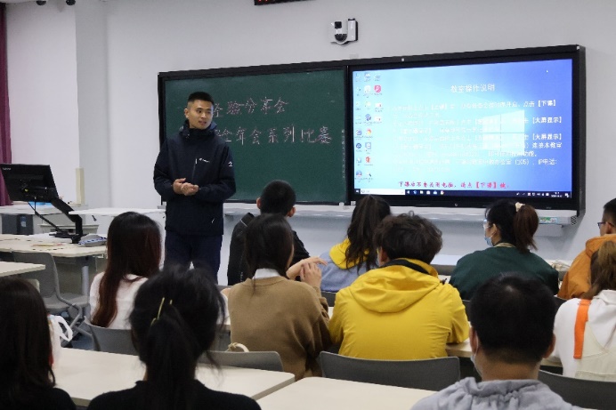 辅导员于晓鹏鼓励同学们积极与学长、学姐交流,踊跃参加各类竞赛,在竞赛中进一步锻炼自己,努力做到德智体美劳全面发展。