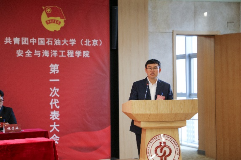周学智代表学校团委向大会召开表示热烈祝贺!他充分肯定了学院自建立以来,学院团委所取得的一系列成绩,其中包括代表学校首次捧得全国大学生暑期社会实践成果TOP10,首次获评北京市十佳主题团日活动,在第十四届挑战杯全国创业计划竞赛“一带一路”专项赛中摘得学校唯一国赛铜奖等。他深情寄语广大青年,要坚定信念、志存高远,把个人价值追求融入民族进步之中;要勤奋学习、躬行实践,打牢进步根基,更好地担负起重担重任;要务实奋进、创新创业,用行动回答“教育强国,中石大何为”;要砥砺品德、升华境界,积极弘扬中石大精神。