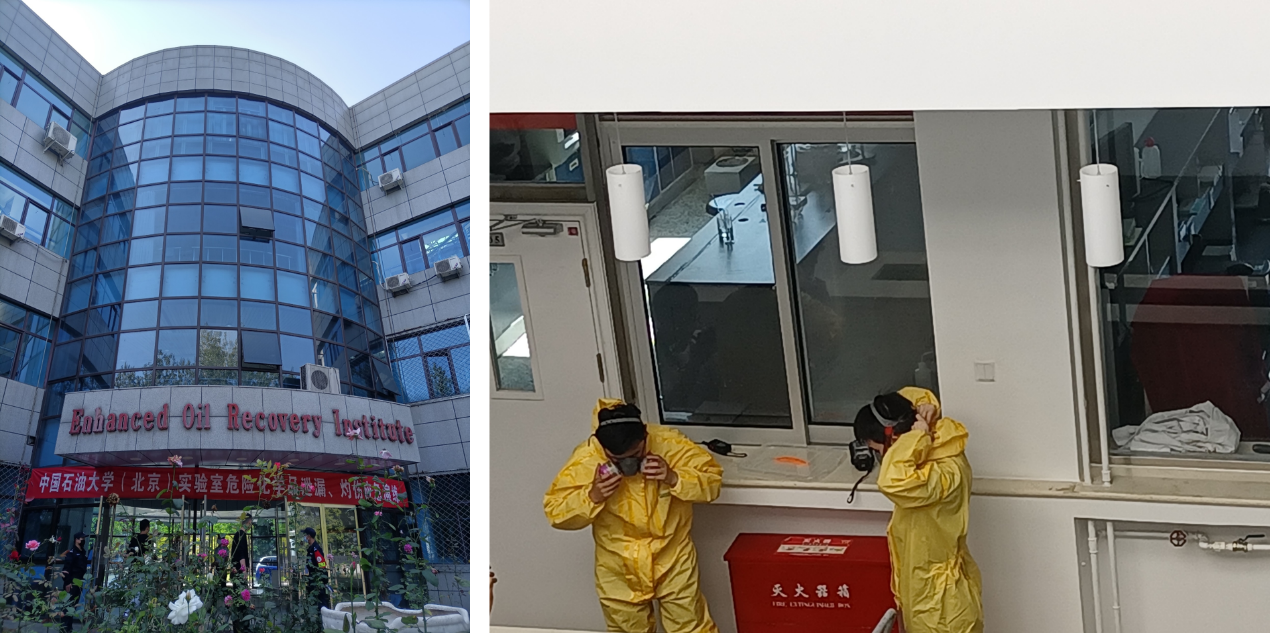 为让广大师生熟知发生实验室危险化学品泄漏、灼伤事故后的正确处置程序和方法,减少人员伤亡和财产损失,检验应急预案、锻炼队伍和完善准备,9月29日14:30学校各相关部门组织于提高采收率楼开展学期初实验室危险化学品泄漏、灼伤应急演练。安全学院实验中心教师朱益、刘方媛参与演练。