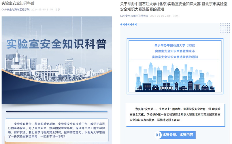 2、学院公众号发布实验室安全知识科普及实验室安全知识竞赛选拔通知,以便让全院师生了解、重视实验室安全。