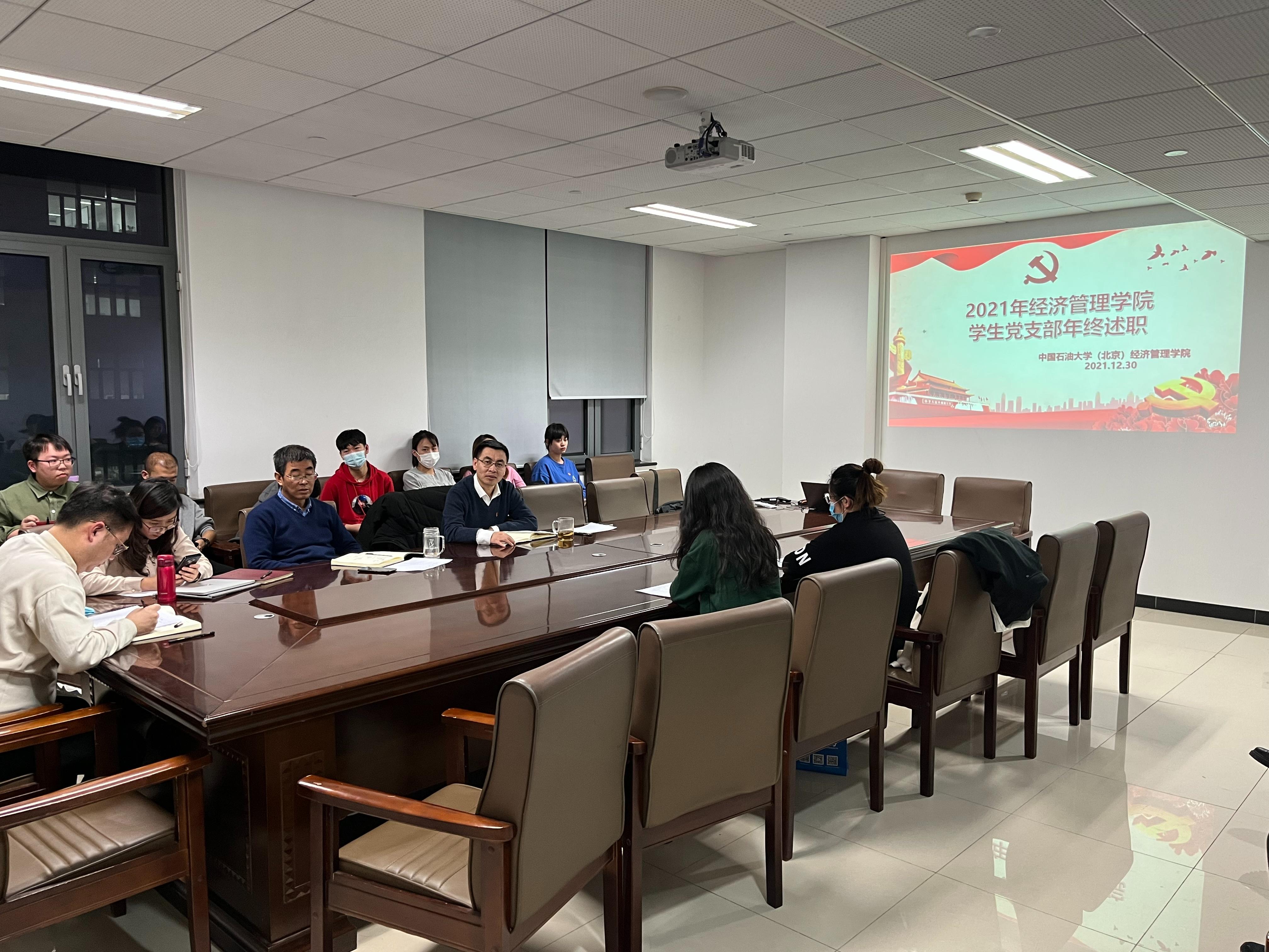12月30日下午,经济管理学院在主楼B座1115进行了2021年经济管理学院学生党支部书记年终述职。经济管理学院党委书记朱义清、组织员刘玉平、辅导员纪爽、孙伟宸及学院全体学生党支部书记等20余人参加本次答辩。孙伟宸主持本次述职答辩。
