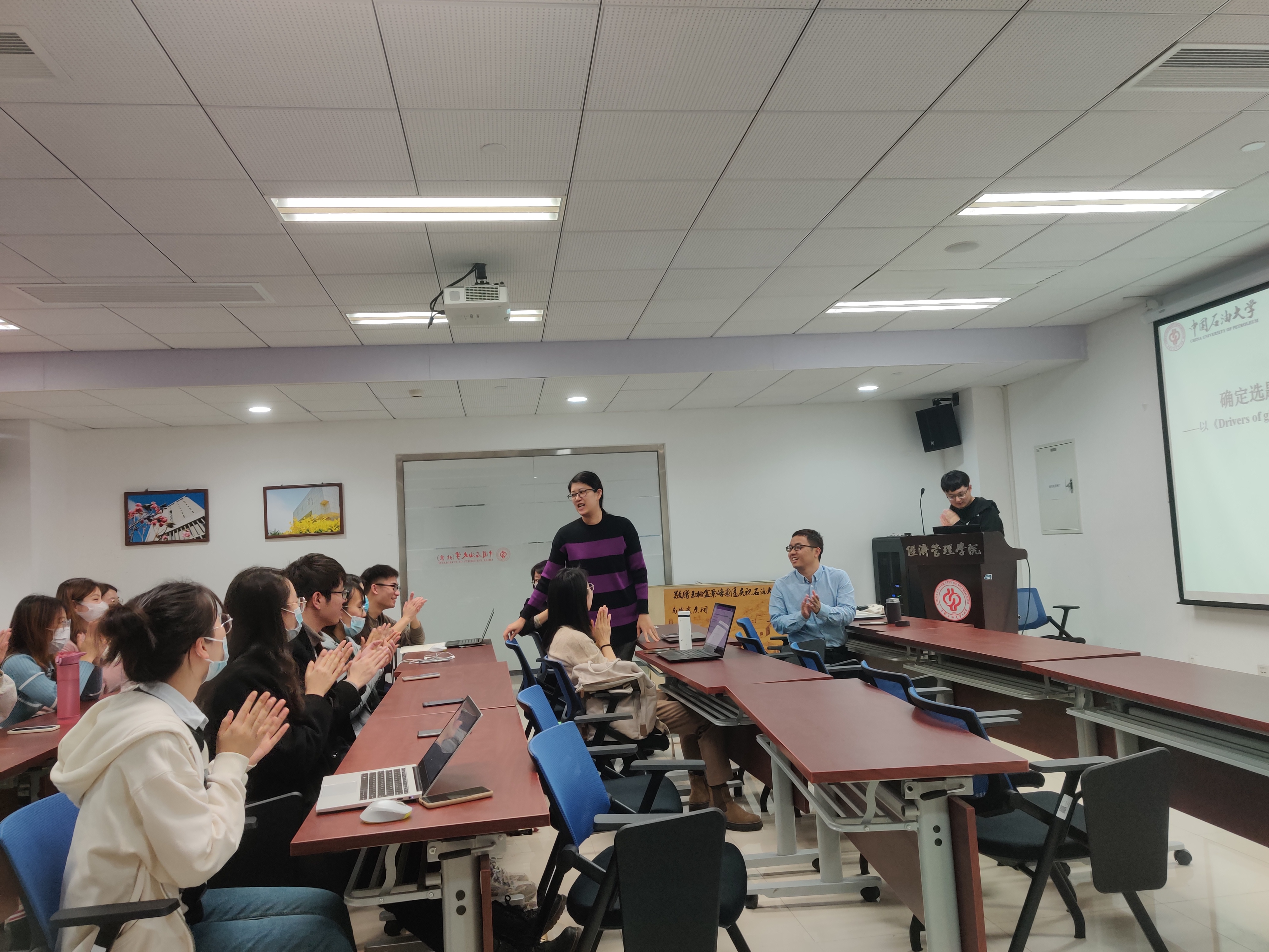 为促进学院内部学术交流,提升研究生科研能力,12月9日中午12:30,经济管理学院在主楼B座1118会议室举办了第二期博士生学术沙龙。本期沙龙邀请了我院管理科学与工程专业18级博士生刘伯瑜同学做分享交流。本次学术交流由王建良教授主持,林绿副教授和郑馨竺副教授担任点评嘉宾,马春爱副院长、李明教授、禹春霞副教授等学院教师,以及学院博士生、硕士生、本博一体化学生,共计40余人参加。