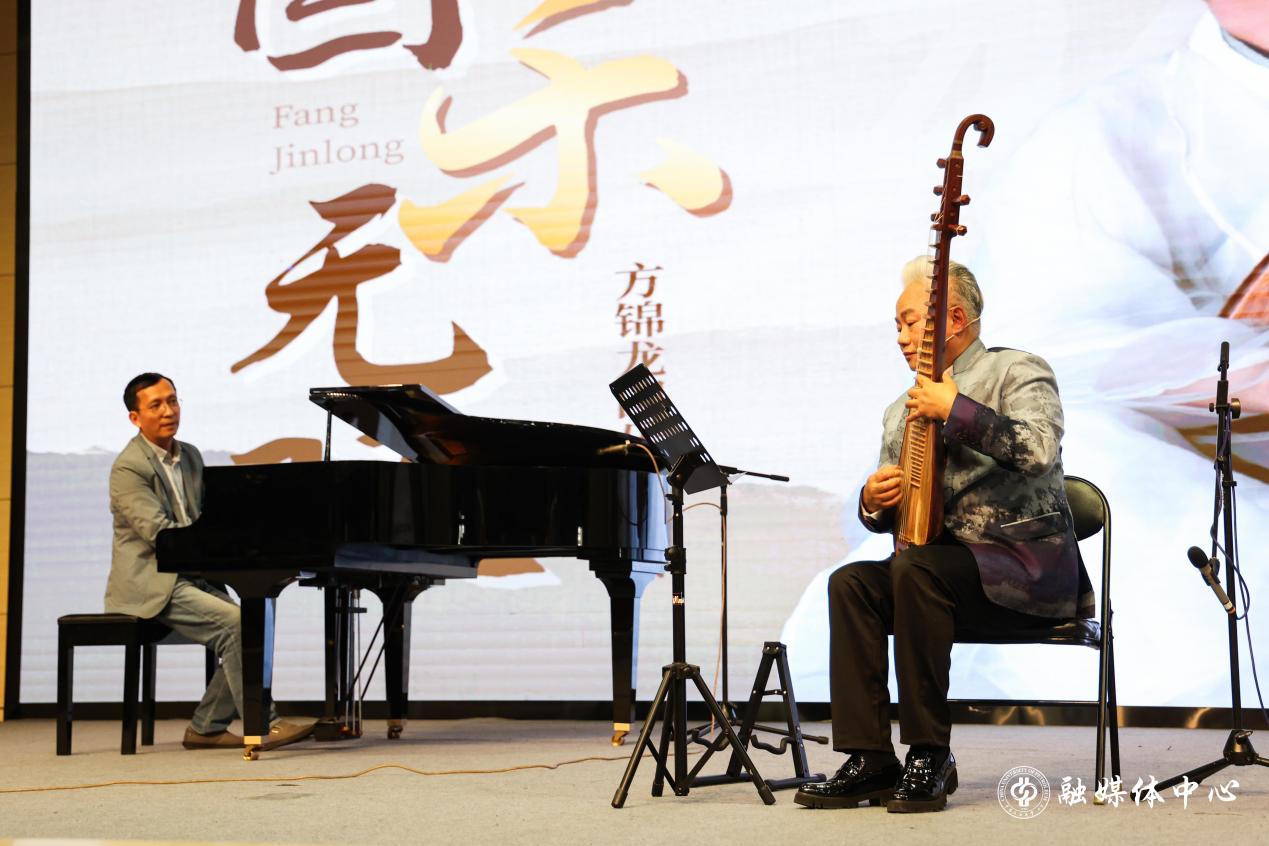 活动中,方锦龙以幽默风趣的语言和深厚的艺术功底,从中国乐器的发展案例切入,通过现场演奏与讲解结合的方式,展现了琵琶、尺八、骨笛等传统乐器的独特魅力,并即兴演绎了《忆江南》《金蛇狂舞》等经典曲目,更以“国乐混搭”形式将流行音乐、影视配乐与民乐融合,引得观众连连惊叹。