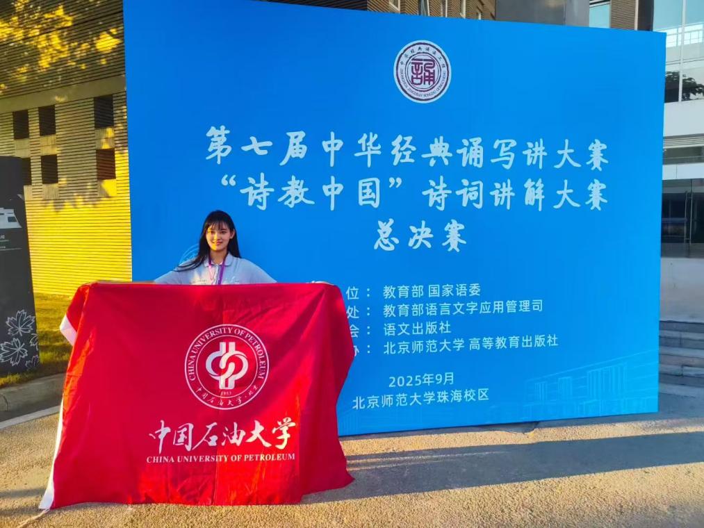 安全与海洋工程学院徐宁慧同学,凭借对《念奴娇·过洞庭》的深刻理解和精彩讲解在上万名选手中脱颖而出,荣获大学生组全国一等奖,至此,中石大成为北京高校唯一在教师组、留学生组、大学生组均斩获一等奖的高校;碳中和学院俞江南同学《青玉案·元夕》获三等奖,机械与储运工程学院王云博同学、外国语学院学院曲莎莎、留学生UNG MIN KHANT同学分别获优秀奖;学校获奖总成绩名列北京高校第二名,充分彰显了中石大学子的人文风采和竞赛实力。