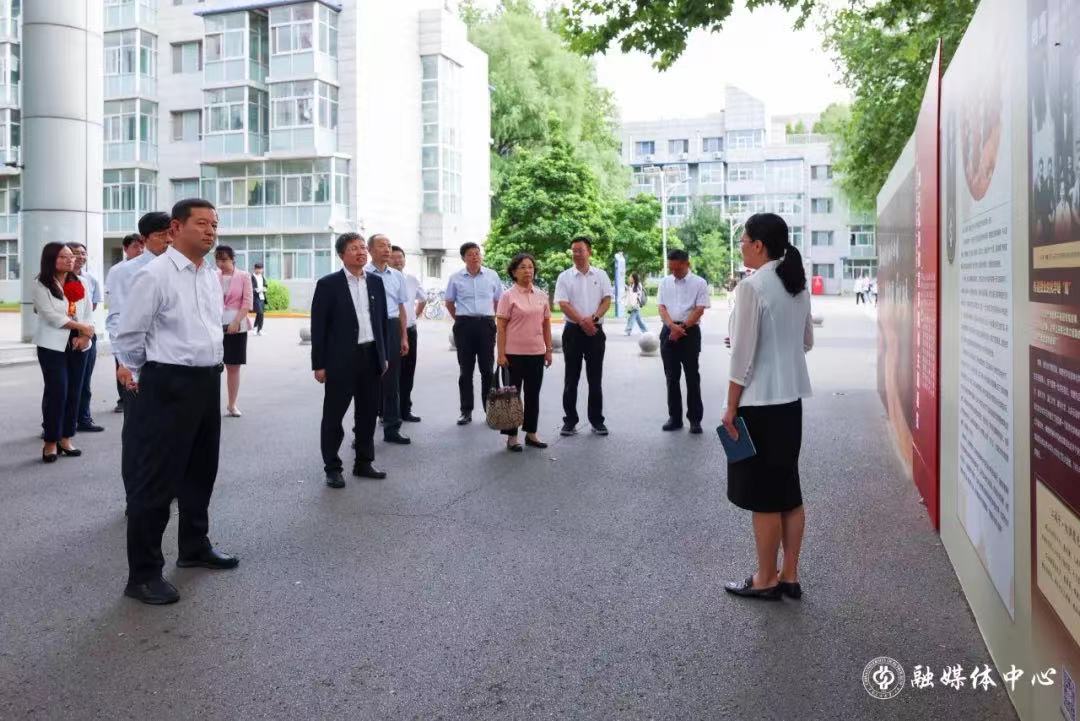 校领导王同奇、金衍、鲍志东、韩克飞、文永红、刘植昌、张广清,中共党史、石油高等教育史和中国石油大学校史研究专家余世诚,荣休教师代表、学校原党委书记山红红及有关部门、学院负责人一同参观了展览。
