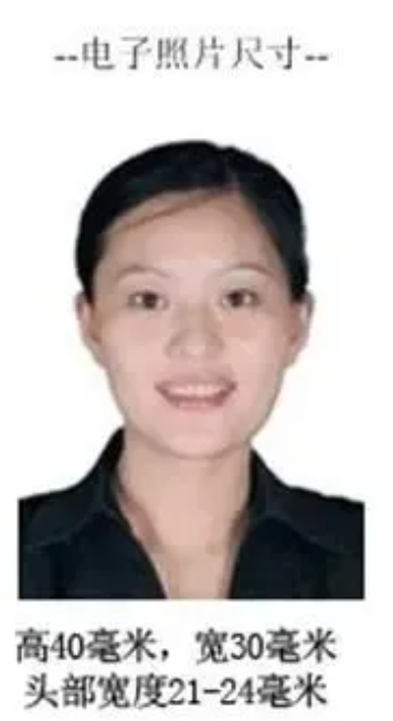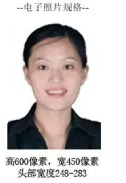2.图像规格:图像比例为4:3,即高度为4,宽度为3。具体尺寸为:600像素(高)×450像素(宽),图像文件大小在20kB-200 kB,JPG格式。图像尺寸为40毫米(高)× 30毫米(宽),头部宽度为21-24毫米。