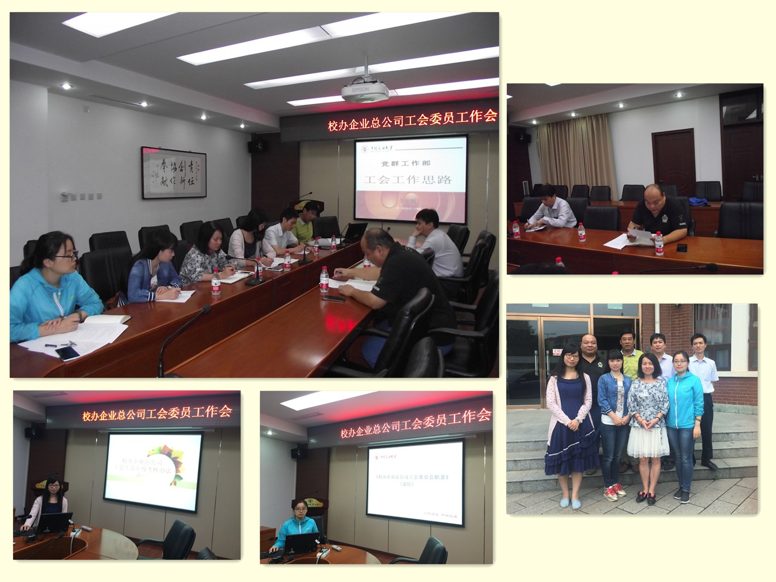 校办企业总公司工会于日上午在一层会议室顺利召开本年度工会委员会工作会议。校办企业总公司张珣总经理及全体工会委员、工会小组组长参加会议,本次会议由工会主席吴世刚主持,主要内容围绕宣布新一届工会委员、了解校办企业总公司工会活动思路、宣读工会相关文件展开。