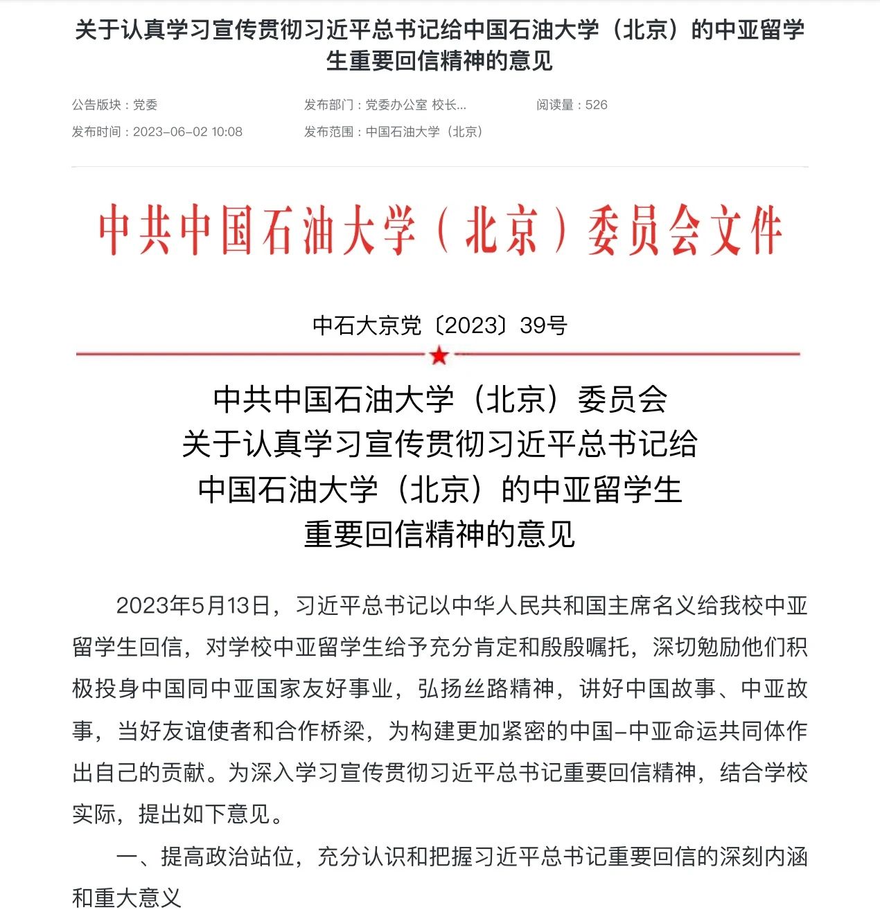2023年5月,国家主席习近平复信SUNBET申搏官网的中亚留学生,鼓励他们为推动中国同中亚国家关系发展作出更大贡献。
